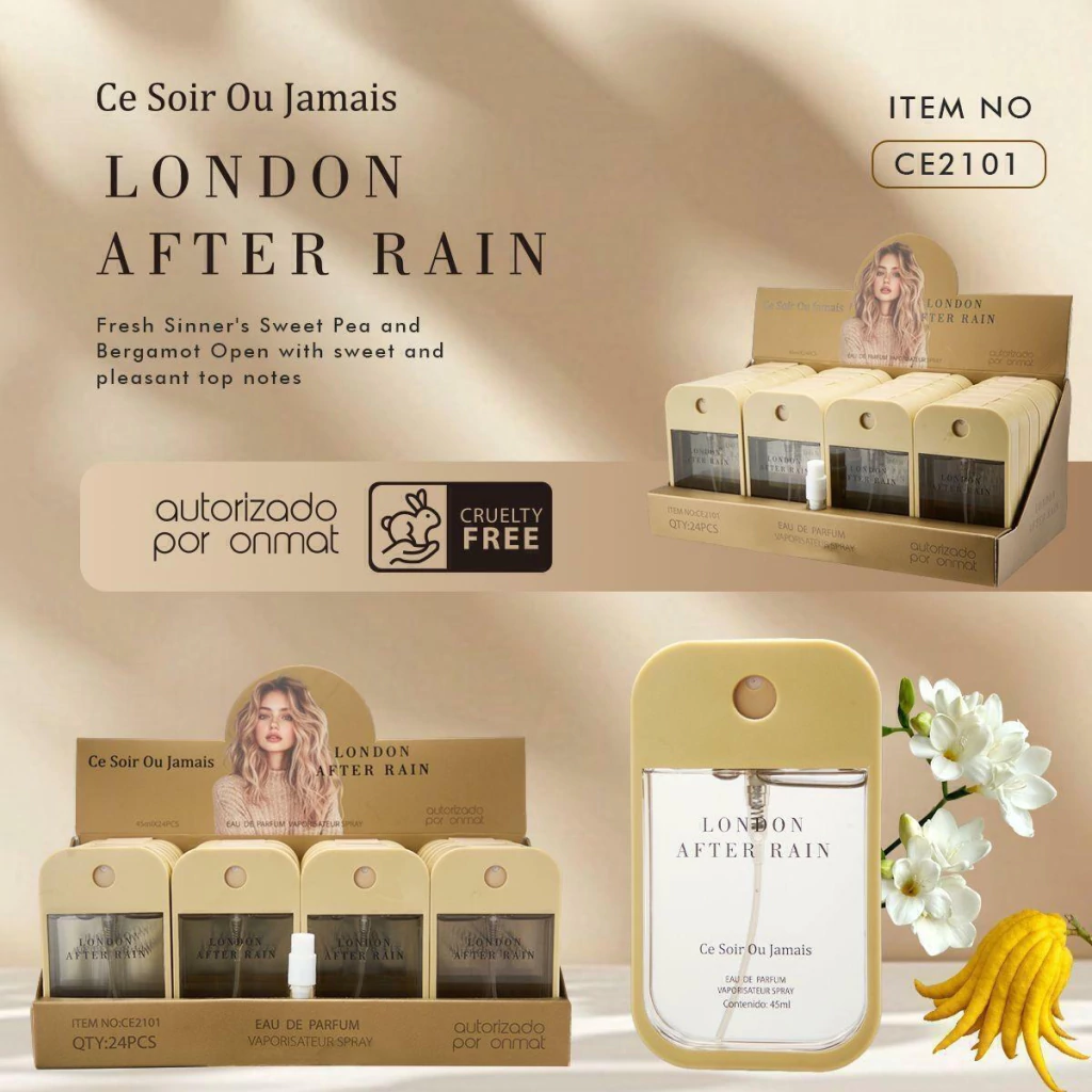 Descubre el perfume Ce Soir Ou Jamais "LONDON AFTEN RAIN", una fragancia única que combina notas sofisticadas y frescas para acompañarte en cada momento especial. Su aroma envolvente es ideal para quienes buscan un toque de distinción y modernidad.