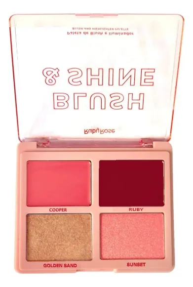 El Ruby Rose Blush and Shine es una paleta versátil que combina rubor e iluminador en cuatro tonos radiantes. Su fórmula sedosa y pigmentada se difumina fácilmente, brindando un acabado luminoso y natural que realza tu belleza en cada aplicación.