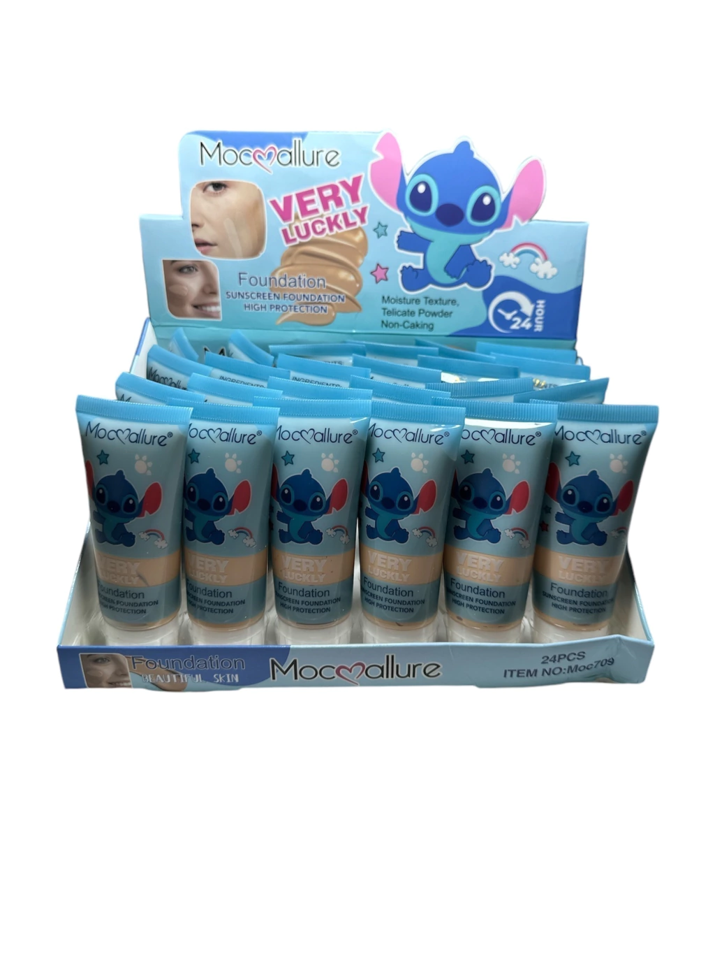 Base líquida de alta cobertura con un adorable diseño inspirado en Stitch. Su fórmula ligera se difumina fácilmente, proporcionando un acabado natural y duradero. Ideal para todo tipo de piel.
